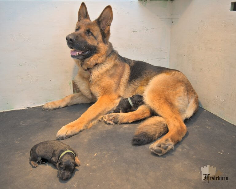 Both puppies were on the larger side, but Annora worked hard and delivered them both quickly. We’re so proud of her! She’s an amazing mom and we’re so grateful that she was able to get pregnant again after waiting so long. She loves being a mom and is incredibly devoted to her pups.