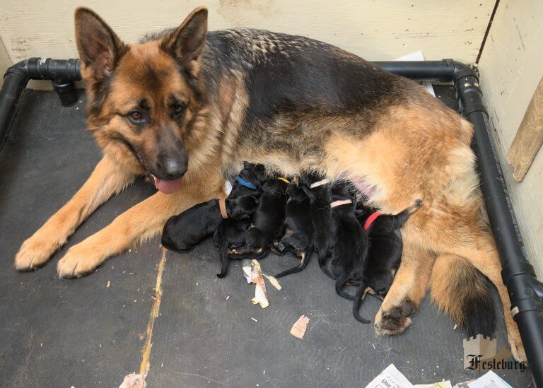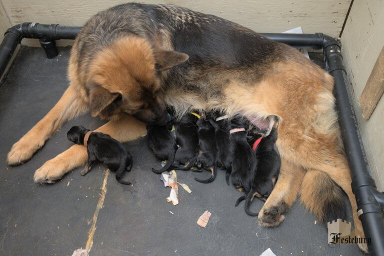 Les chiots de Frieda sont nés hier, le 10 mars ! La date prévue pour la mise bas n’était que le 12, nous avons donc tous été surpris lorsque le premier chiot est arrivé hier soir. Le travail a été court : les 7 chiots sont nés en moins de 5 heures et demie ! Il y a 4 mâles et 3 femelles, qui se portent tous très bien.